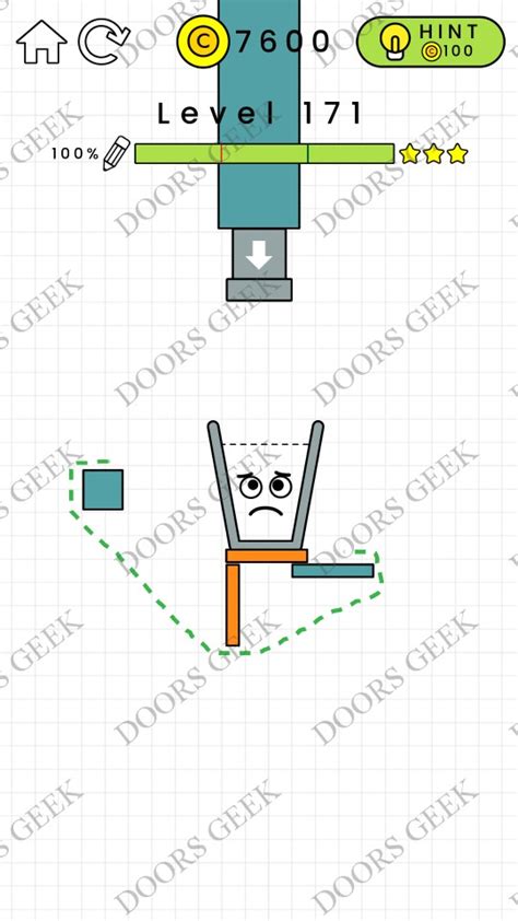 Kaca pada level 171 sangat lemah dan mudah pecah. Tugasmu adalah membuat kaca mencapai air tanpa bantuan apapun. Kamu harus berpikir secara kreatif dan membuat jalan terbaik yang dapat dilalui.